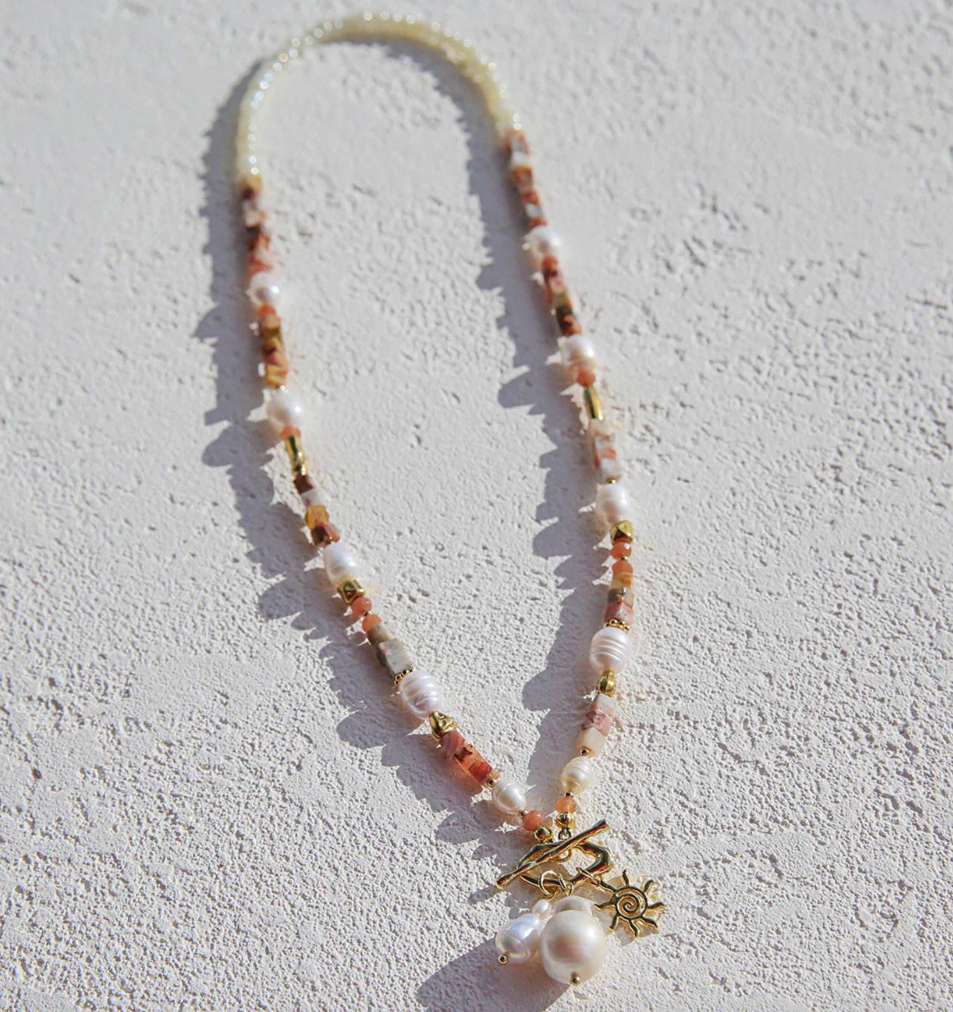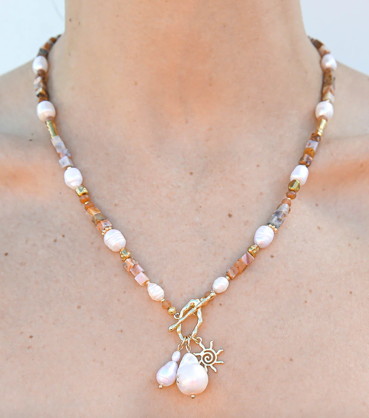 Handmade necklace featuring a Keshi Pearl and Agate beads.