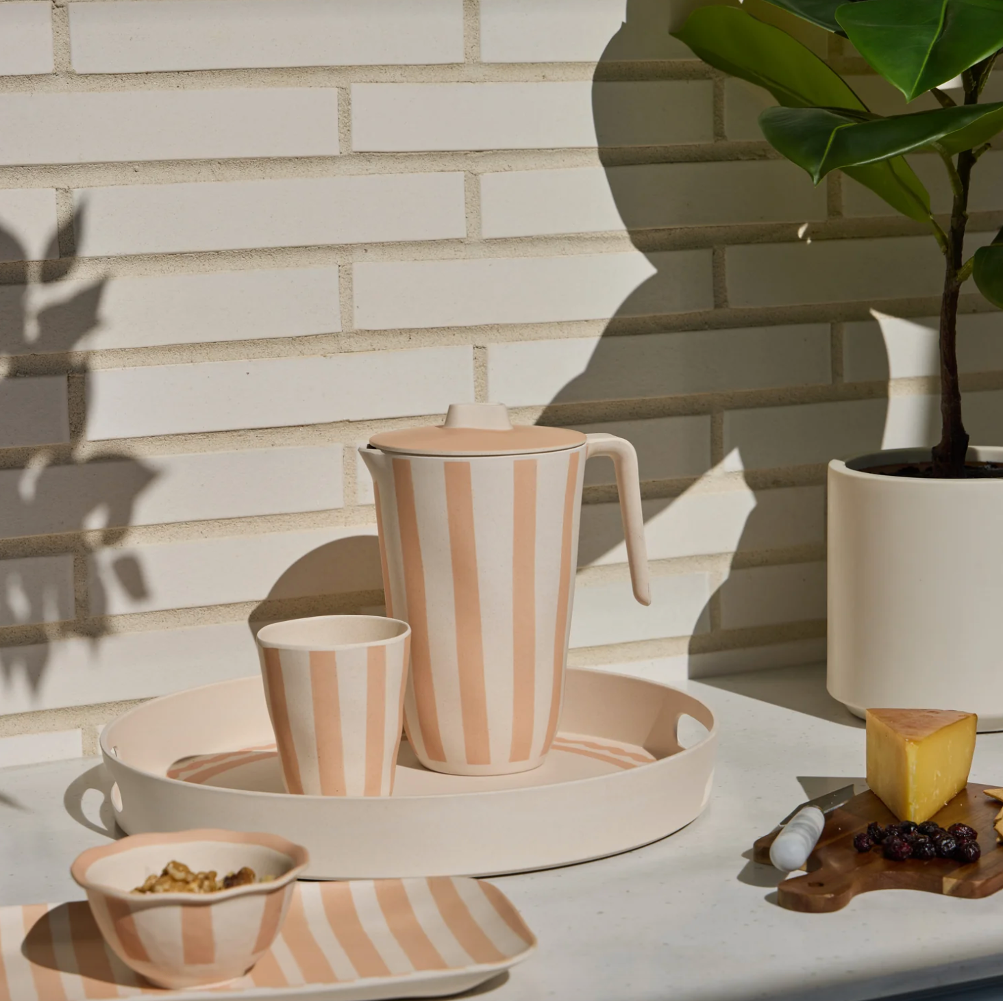 The Saltara Bamboo Fibre Serving Platter brings playful whimsy to your picnics with a striped design that is inspired by the Amalfi Coast.