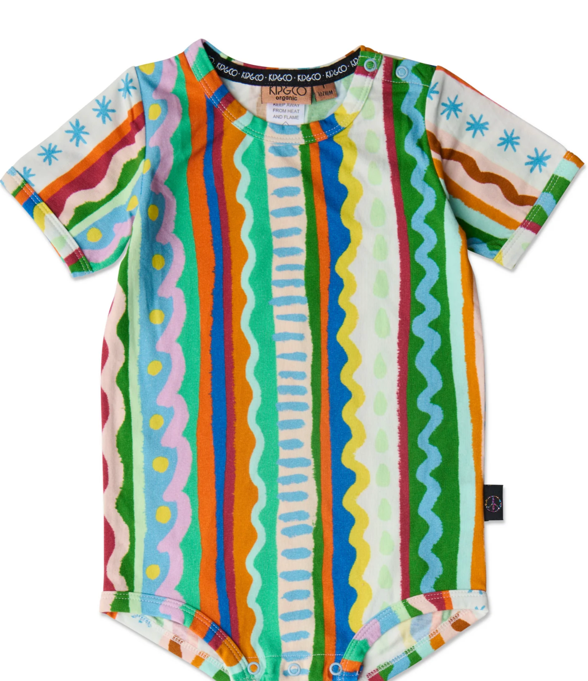 With short sleeves for sunny-day ease, handy snaps for speedy changes, and a whole lot of Kip&Co colour and charm, they’re a must-have for mini movers and groovers.
