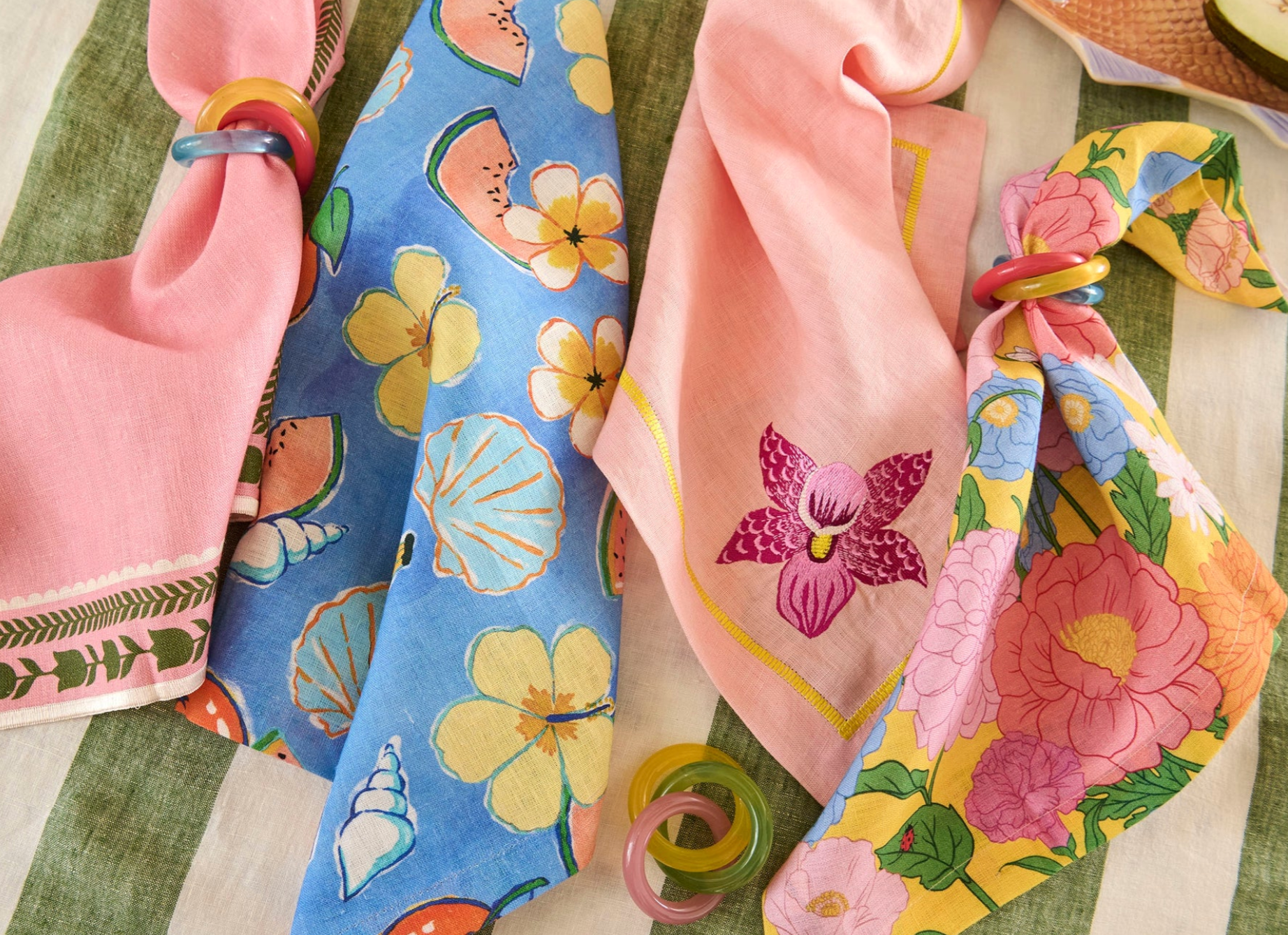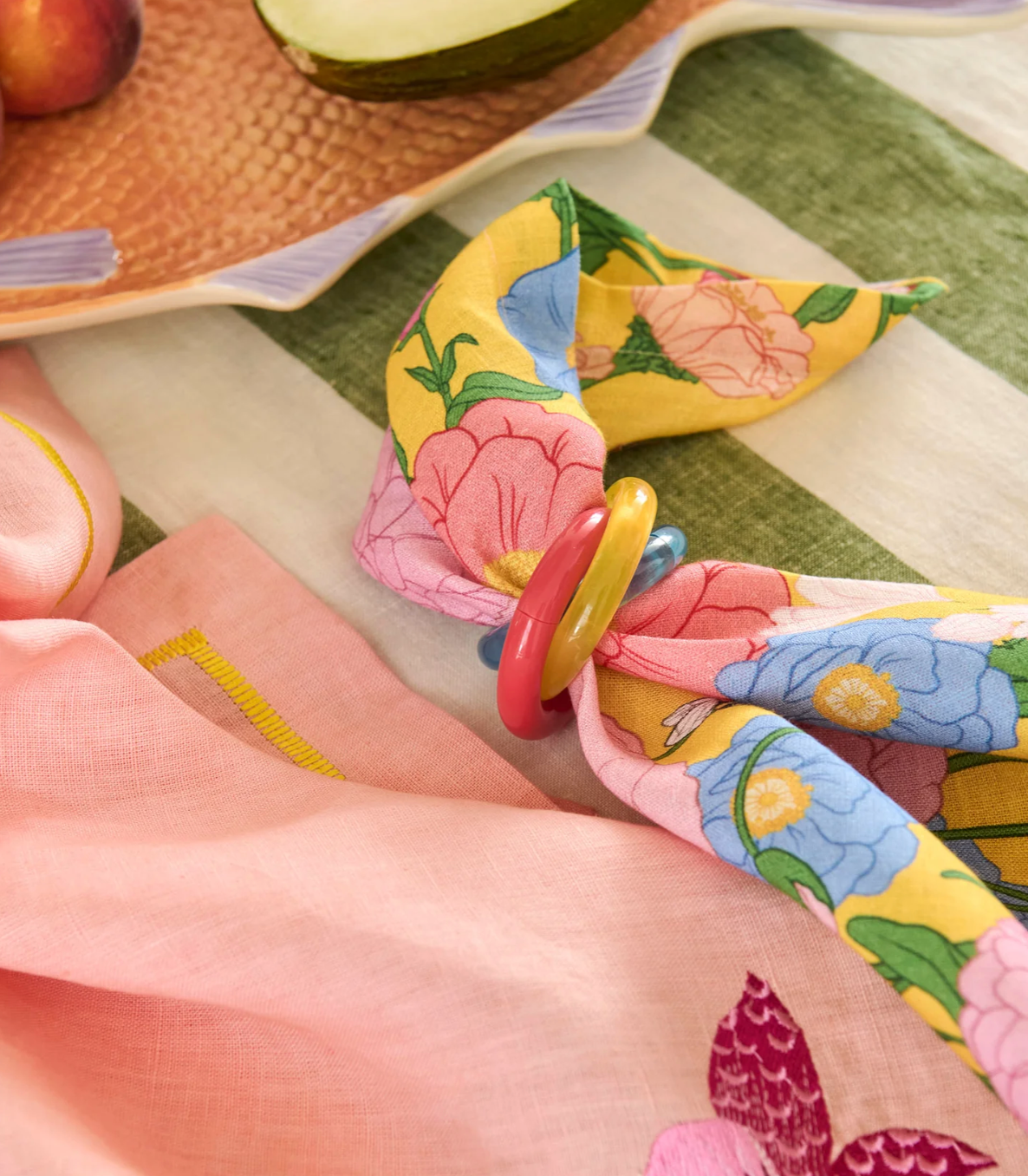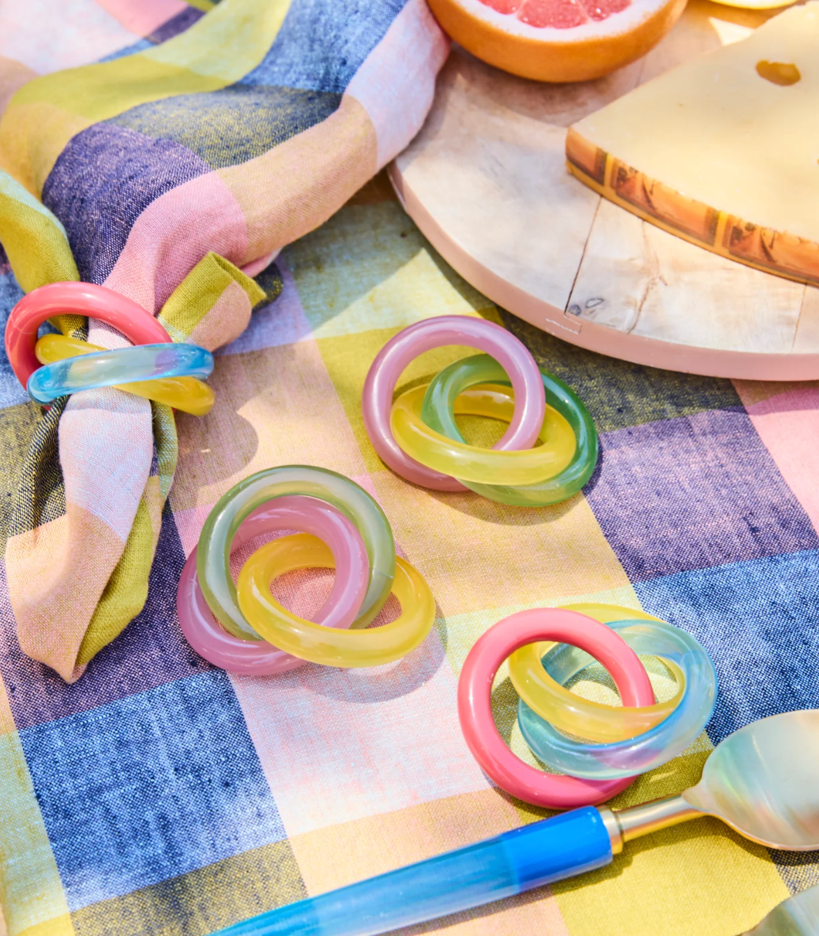 With jewel-like resin finishes, these trinity napkin rings turn every setting into something special, whether it’s a laid-back lunch or a lush dinner party.