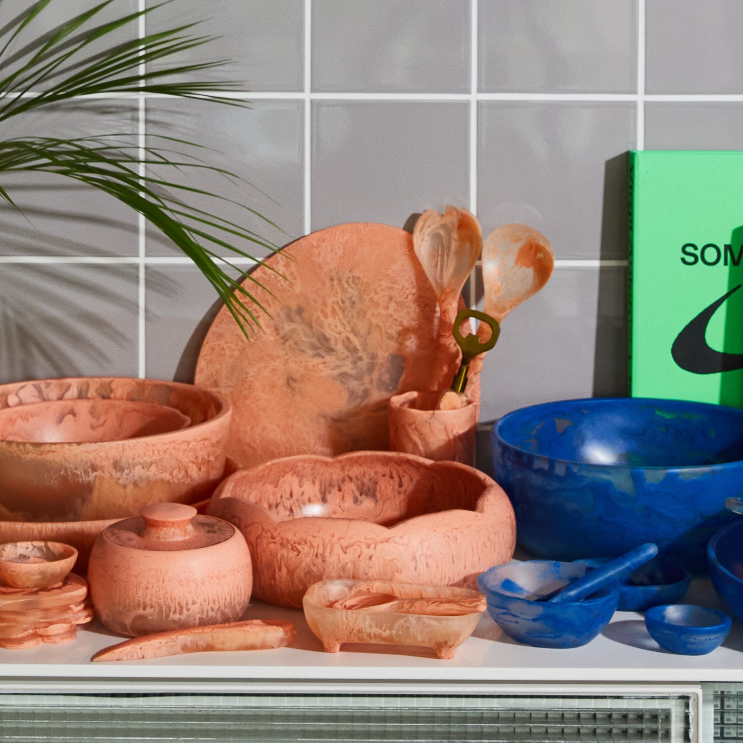 “Whether you’re entertaining or just enjoying daily dinners with the family, our resin tableware makes every meal an experience to remember. The Charlie Board has an organic, asymmetrical silhouette that’s perfect for serving cheese, charcuterie and sweet treats to your guests. Reimagined here in our stunning Caviar colourway – swirling together zesty peach hues and transparent resin for a deliciously tangy finish.” – Phoebe’s Style Notes
