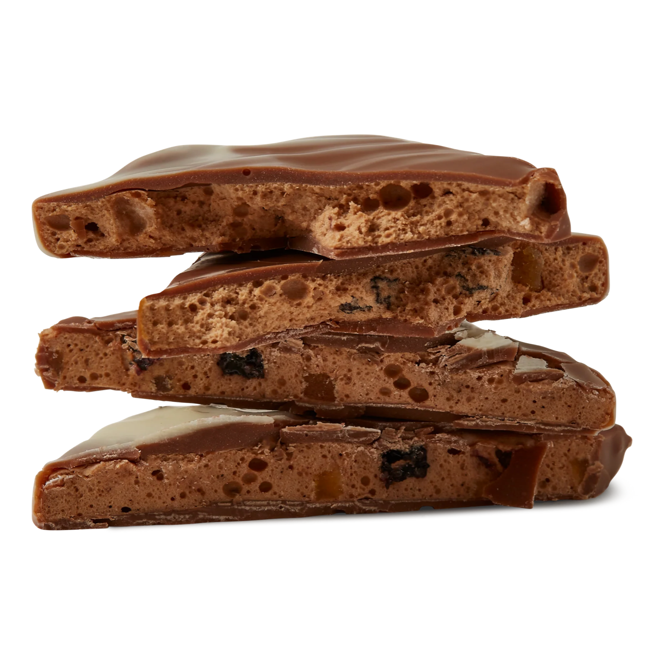Festive spiced marshmallow with currants, cherries, cranberries and orange, coated in creamy milk chocolate.