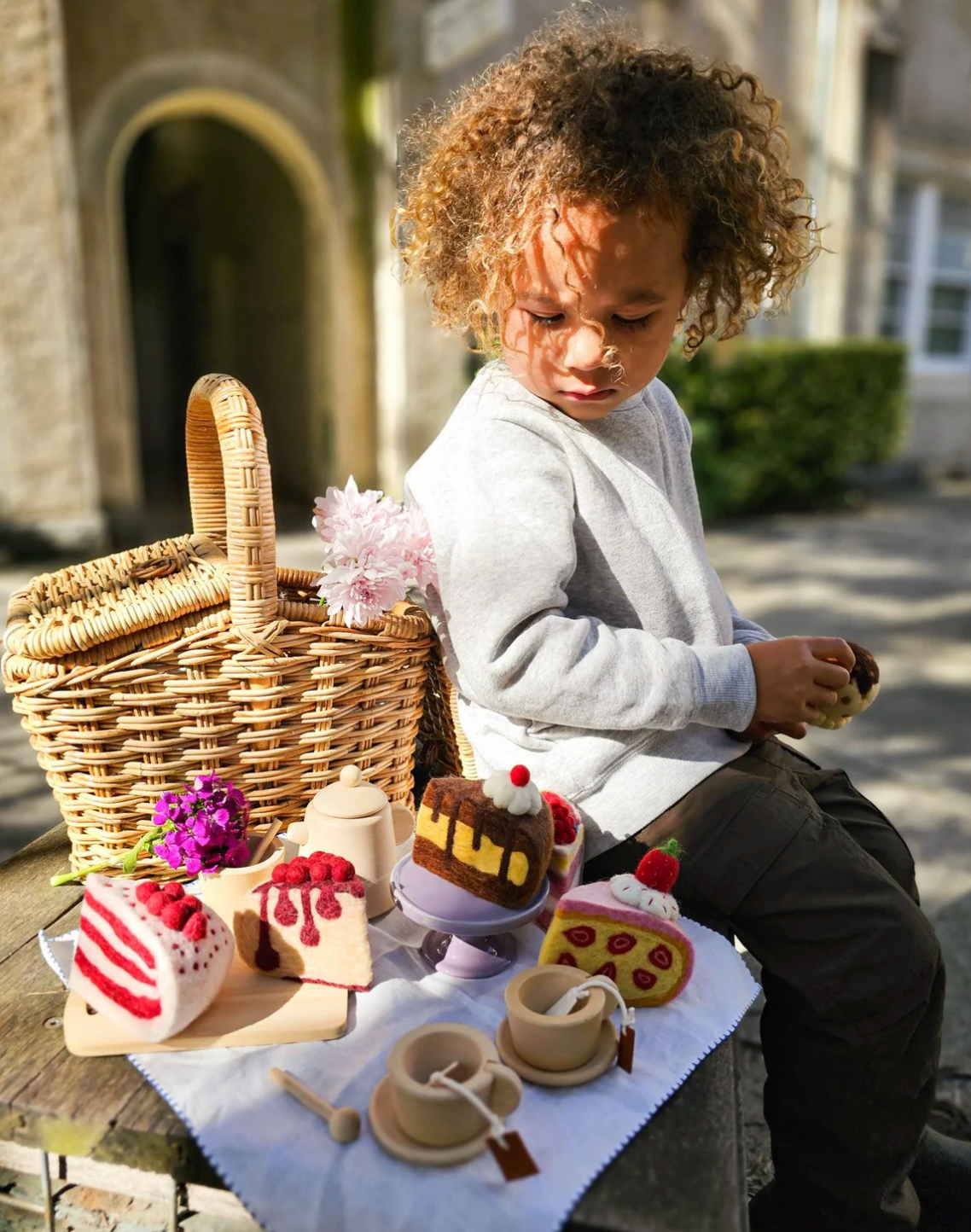 Each Felt Fresh Fruit Torte has been meticulously felted with dense wool that has been dyed with non-toxic colours, making it safe for play.
