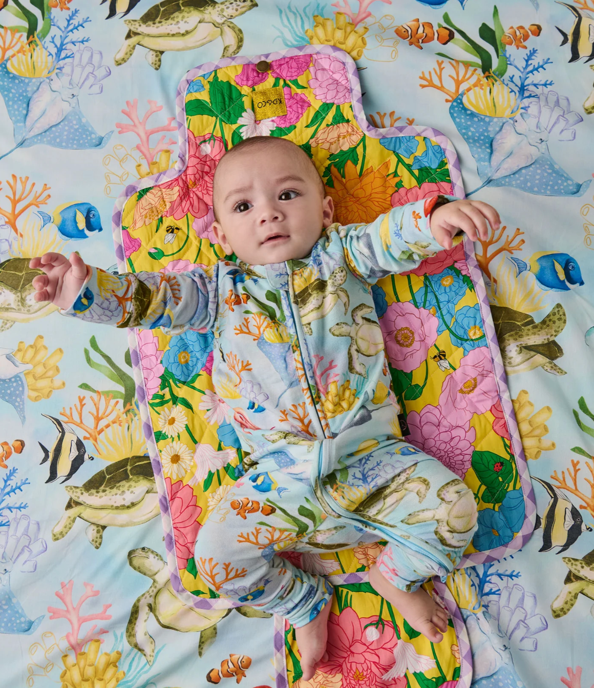 The Kip & Co Beach Follow The Sun Yellow Baby Change Mat is your on-the-go lifesaver, soft, quilted, and easy on the eyes. Made for quick changes wherever you roam, it folds up nice and neat to stash in your baby bag, pram, or car. Travel friendly and fuss-free!