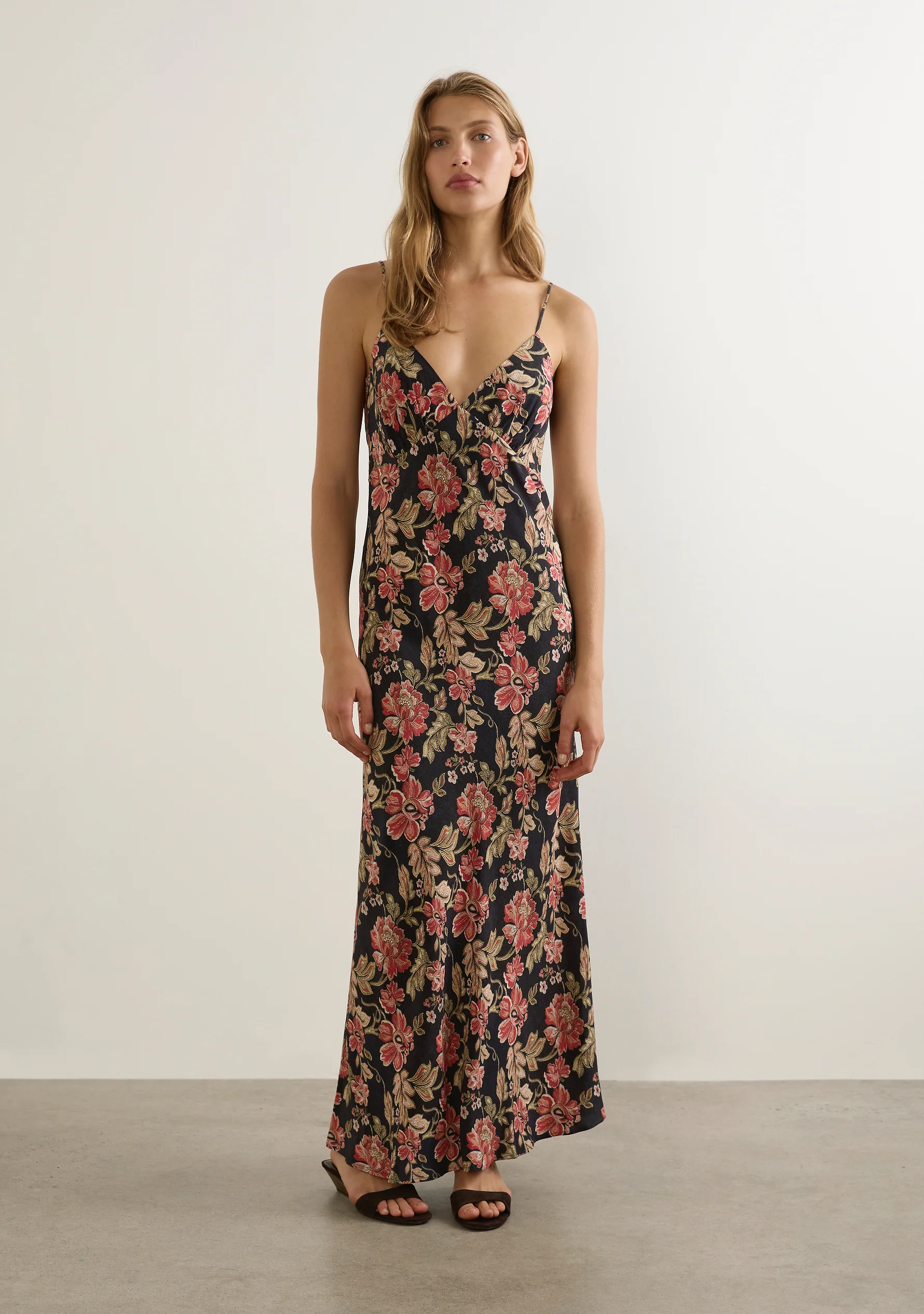 The Kalinda Maxi Dress in Vesper Floral is a striking new slip maxi with a flattering V-neckline, supportive bust, and a scoop back that enhances its bias-cut shape, this style skims the body beautifully before falling into a graceful drape. Ultra-flattering and feminine, it’s the dress to ensure you stand out at your next event — from Christmas Day to New Year’s Eve.