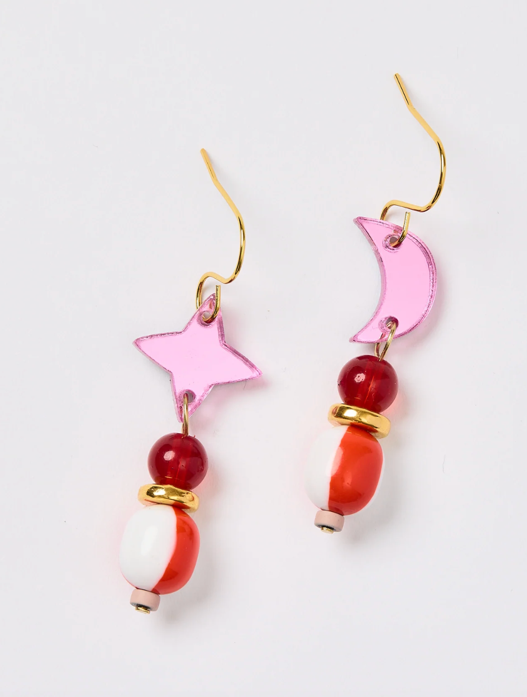 We love a mismatched earring, and what a pair—moon and stars. Paired with a mix of beads, the striped detail brings a fun vacation vibe. Perfect for adding a little something special to any look.