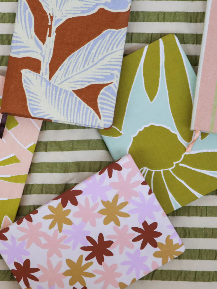 - Notebook covered in 100% linen fabric in the Meridian Gold print