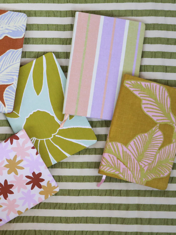 - Notebook covered in 100% linen fabric in the Meridian Gold print