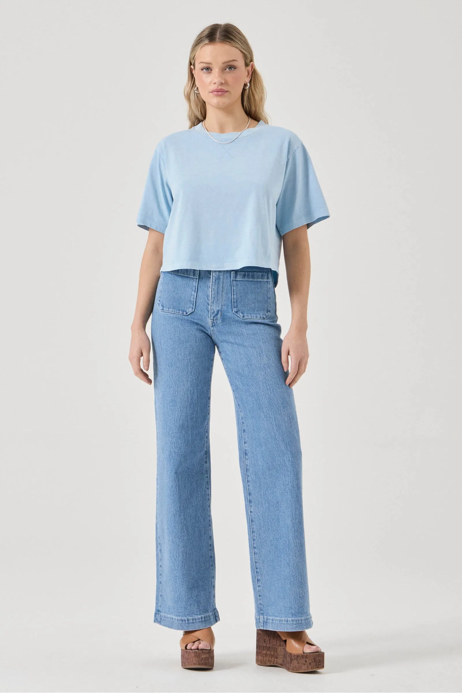 Maddie is 173 tall, and wears a size 8/26 in denim and size S in apparel.
