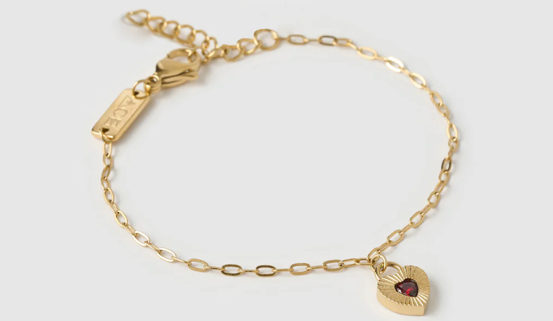 Love really is in the details with the gorgeous Ruby Heart Bracelet! This chain bracelet features a cute heart charm with a stunning shimmering stone. Made for stacking, Ruby is the perfect gift for the romantic in your life. Available in Red and Stone.
