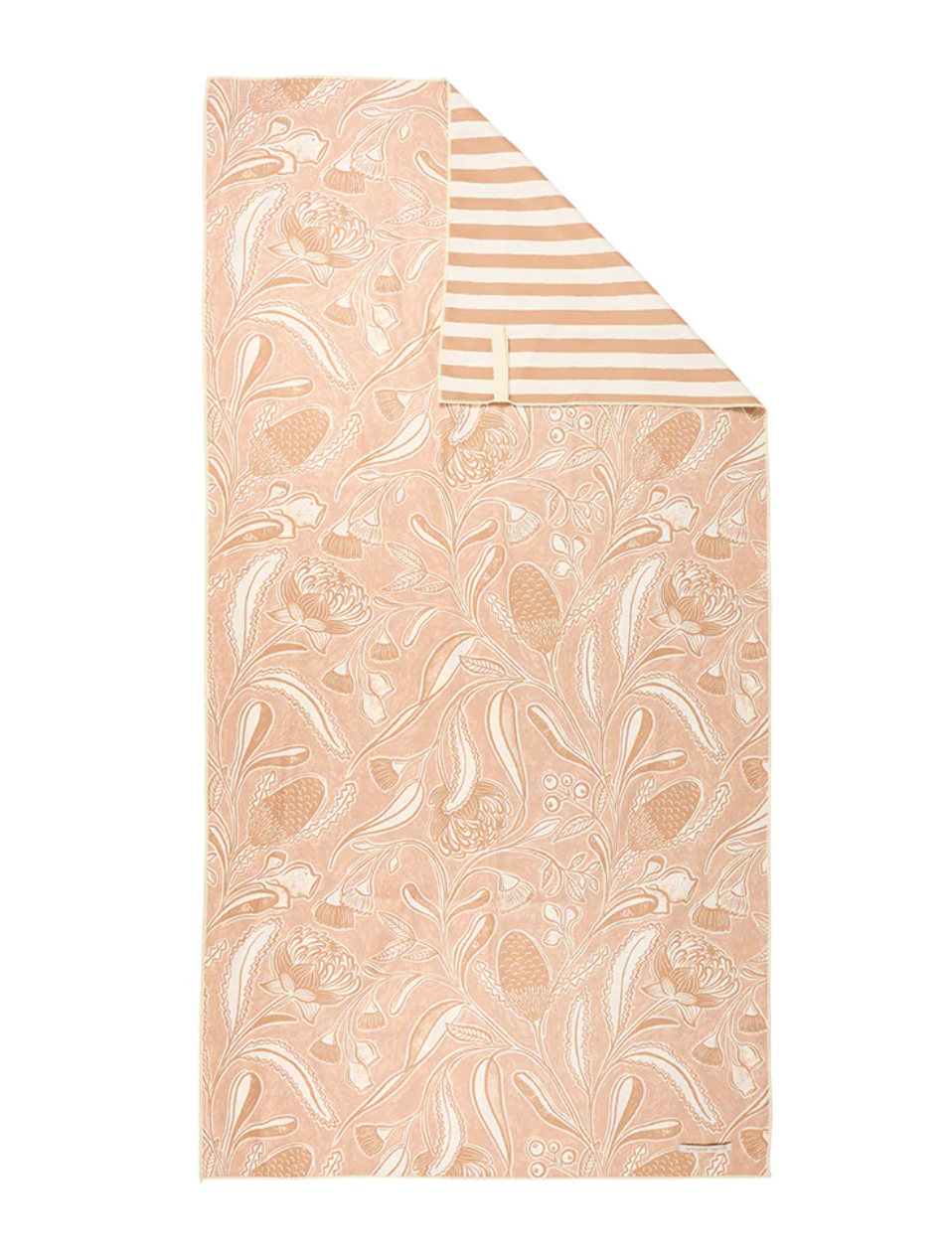 They are made from suede like microfibre, are quick drying, and absorbent. Sand won't cling and the towels, have an elastic loop for holding the towel firm when rolling up which is also handy for hanging to dry.