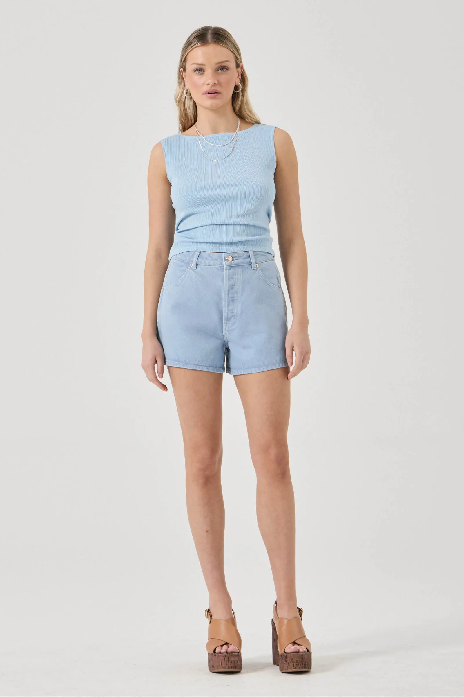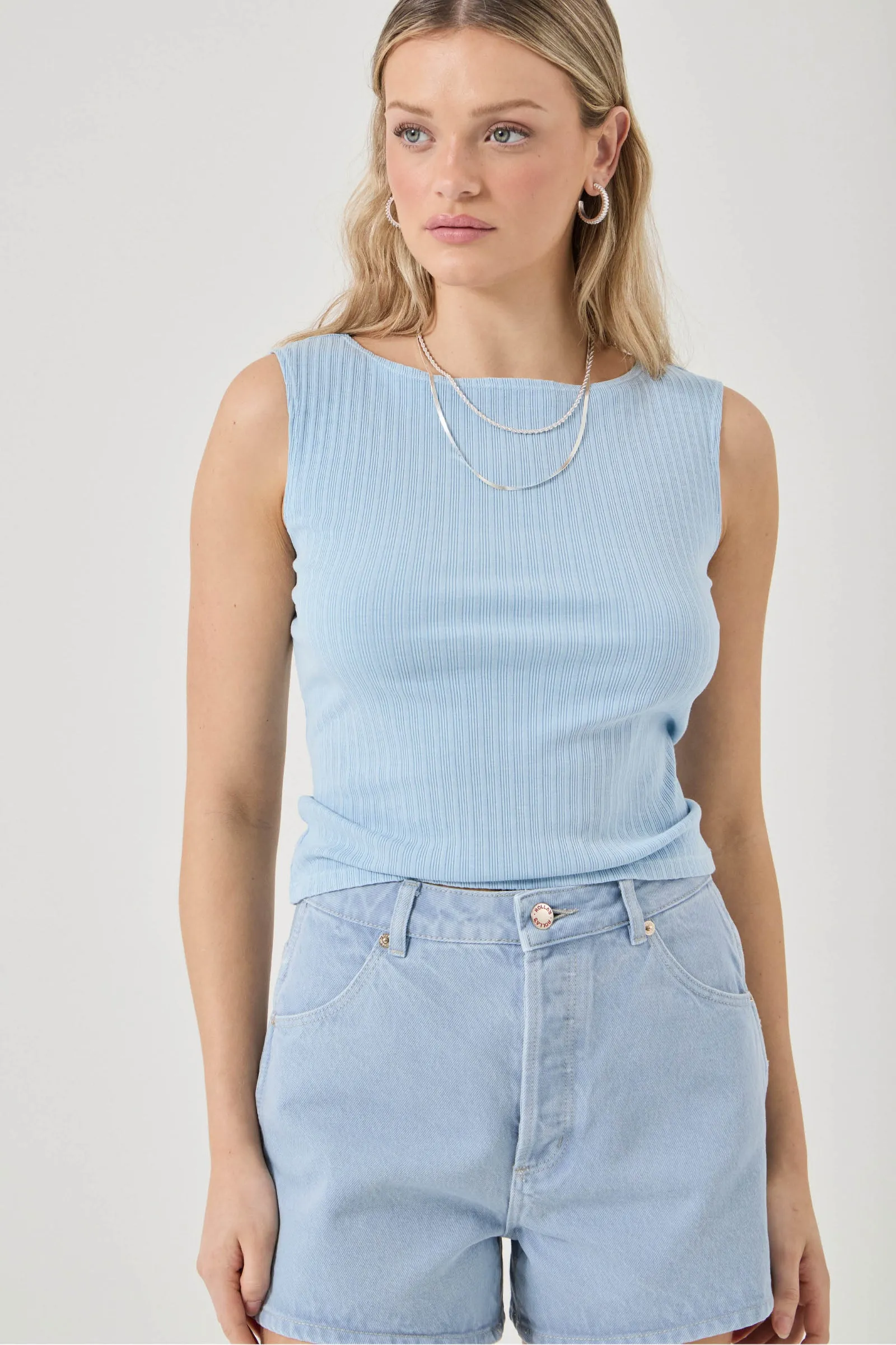 Brighten your day with the Shell Tank Rib in Blue Heaven. This lively tank features a soft ribbed texture, perfect for adding a fun, carefree vibe to your look.
