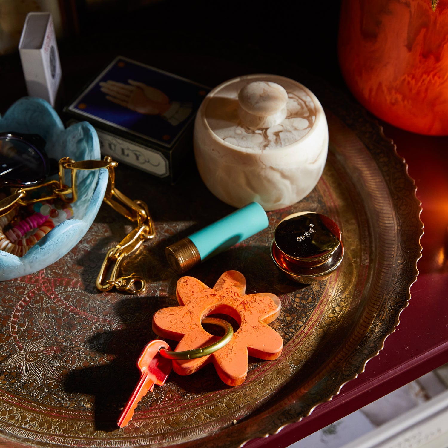 “With our Whitney Keyring, you can bring a touch of fun and playfulness wherever you go. It’s made from resin for a durable yet lightweight finish and shaped like a sweet flower so you can always tell which keys are yours. Treat yourself or a loved one with our stunning Persimmon colourway – swirling together a rich orange and transparent resin for a bright statement." – Phoebe’s Style Notes