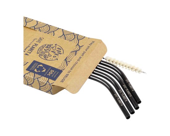Pack contains: 4 x Bent Drinking Straws, ø 6mm x 21.5cm h 1 x Natural Bristle Cleaning Brush
